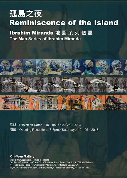 The Studio  of Ibrahim Miranda is pleased to invite you to the solo exhibition “Reminiscense of the Island. The Map series of Ibrahim Miranda” in CHi-Wen Gallery, Taipei, Taiwán.