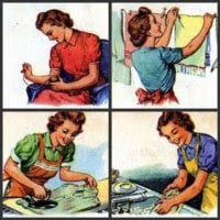 E aí, nós só não líamos o jornal, recostados num sofá, porque nem tínhamos sofá, nem nessa altura se compravam jornais lá em casa e nem nós os leríamos se os houvesse. De qualquer maneira, lá se nos ia metendo na cabeça que isso dos trabalhos domésticos eram coisas de mulheres.