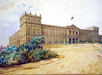 Legenda da imagem: Palácio da Ajuda, Portugal, Enrique Casanova, século XIX (2ª metade), Ass.: «CA», Aguarela sobre papel, 20 x 27,5 cm, Aquisição: BTA,1991, Palácio Nacional da Ajuda, inv. 54502