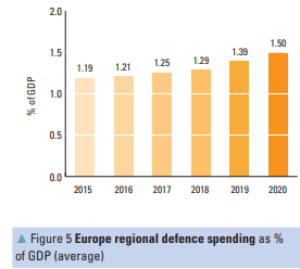 Os Estados Unidos, o secretário-geral da NATO e os ministros da Defesa da NATO têm estado a apresentar como necessidade essencial de defesa dos países da Aliança contra a ameaça russa um valor mínimo de 2% do PIB de cada Estado para despesas ditas com a defesa.