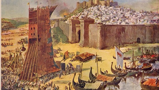 A conquista de Lisboa aos mouros em 1147 numa pintura de Roque Gameiro.