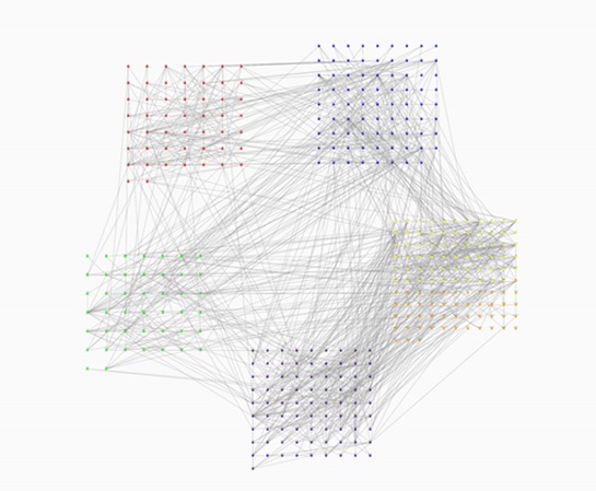 Na imagem abaixo vemos graficamente essa teia de relações que se estabelecem entre as cinco partes da Ética. Este mapa digital foi realizado por John Bagby, um estudante de doutoramento da Universidade de Boston e procura apresentar a estrutura argumentativa da Ética de Spinoza.