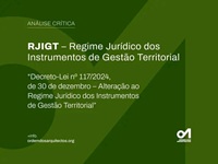 Entretanto, tal como realizado anteriormente no processo conhecido por “simplex urbanístico”, a OA elaborou um documento para facilitar a identificação e compreensão das alterações introduzidas no RJIGT e quais as possíveis implicações no exercício da atividade profissional dos Arquitetos. Em anexo encontram-se os artigos alterados por este Decreto-Lei n.º 117/2024, de 30 de dezembro, onde a vermelhos se identifica a redação introduzida, a rasurado a redação que foi alterada ou revogada e a preto a redação que foi mantida.