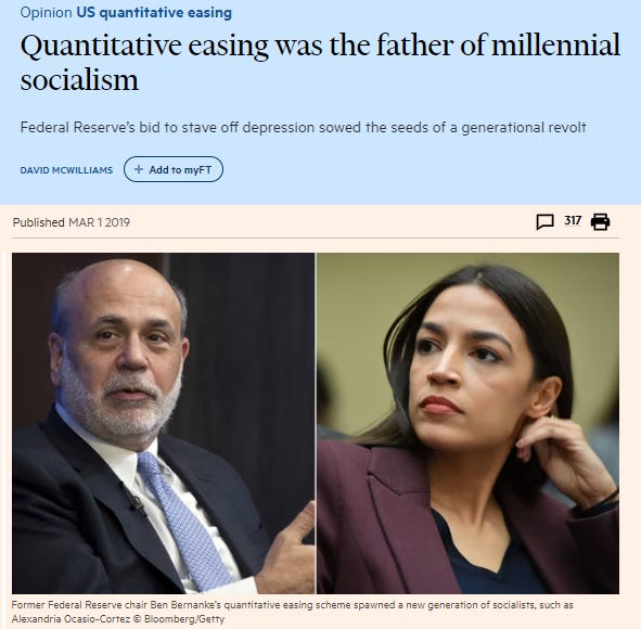 A classe dominante tem estado atenta a estas alterações. Em 2019, o Financial Times, que segundo os autores “que está sempre disposto a colocar a análise crítica para contribuir para a preservação do capitalismo”, partilhava uma coluna de opinião em que argumentava que a política da Reserva Federal, que causaram a valorização galopante do património, era responsavel direta pelo surgimento do socialismo geração millenial (encabeçado por figuras como Alexandra Ocasio Cortez).