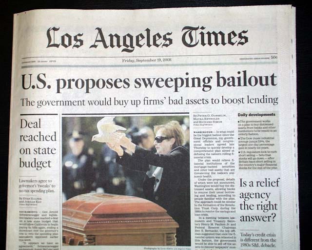 Setembro de 2008, governo dos Estados Unidos da América resgata o sistema financeiro ao comprar ativos tóxicos para aumentar o crédito na economia
