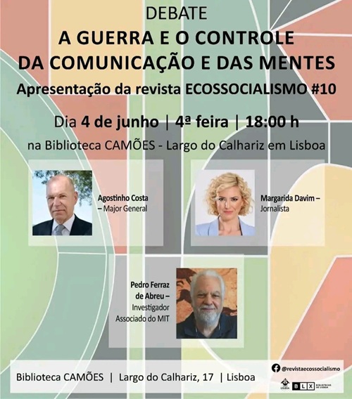 A GUERRA E O CONTROLE DA COMUNICAÇÃO E DAS MENTES, 4 Junho, 4ª feira, 18 h, Lisboa