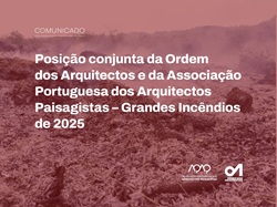 A Ordem dos Arquitectos (OA) e a Associação Portuguesa dos Arquitectos Paisagistas (APAP) optaram por se unir na presente posição conjunta sobre os grandes incêndios de 2025. Os arquitetos e os arquitetos-paisagistas, através das suas associações profissionais e por via respetivamente das suas Secções e Delegações da região Centro e Norte, considerando que estes territórios foram os mais afetados por um verão muito difícil no contexto nacional, ibérico e europeu, solidarizam-se com as populações afetadas pelos incêndios deste verão, enviando condolências às famílias dos combatentes do fogo e uma palavra de conforto e força para com todas as pessoas afetadas de forma material e psicológica neste período tão difícil. Durante o último mês recebemos vívidos relatos de vários dos nossos membros que, na primeira pessoa, relataram o duro combate para salvaguardar pessoas e bens. Agradecemos o esforço de todos os que, muitas vezes com risco de vida, defendem o território e a paisagem, e esperamos que este flagelo termine o mais rapidamente possível.