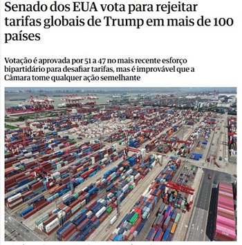 O Senado norte-americano aprovou, por 51 votos contra 47, uma resolução para anular as tarifas generalizadas impostas por Trump a mais de uma centena de países. A decisão – apoiada inclusive por quatro senadores republicanos – representa um claro desafio ao atual presidente e à sua política económica fortemente protecionista.