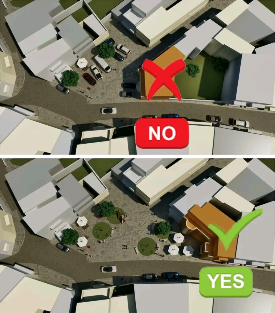 **B -**  **A Praça ficaria ampliada**, **dignificada** e **sem comprometer o futuro.**