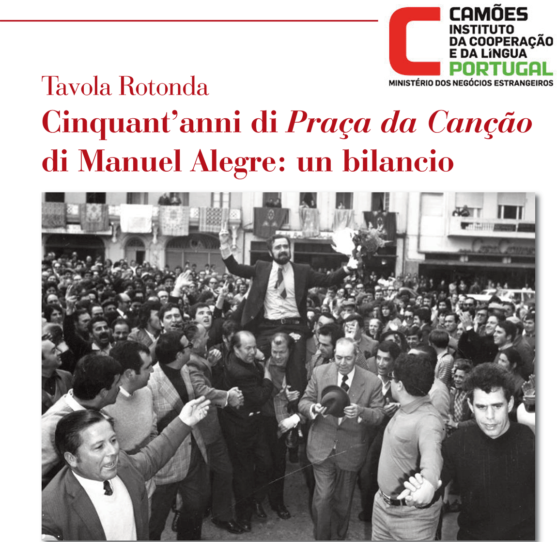 No domingo, dia 12, em Vicenza, na Galeria Palazzo Leoni Montannari, Manuel Alegre estará presente numa sessão integrada no Festival Mundial de Poesia, mas nesse dia inteiramente dedicada aos 50 anos da Praça da Canção, durante a qual actores e cantores italianos declamarão e interpretarão, musicalmente, alguns dos poemas que constam no livro.