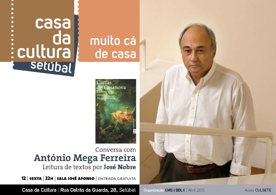 CASANOVA EM LISBOA | António Mega Ferreira imaginou uma visita de Casanova a Lisboa. Conta-a neste livro que agora vai apresentar na Casa da Cultura, em Setúbal. A sessão abrirá com a audição de uma faixa musical escolhida pelo autor. O actor José Nobre participa com a leitura encenada de um texto do livro.
