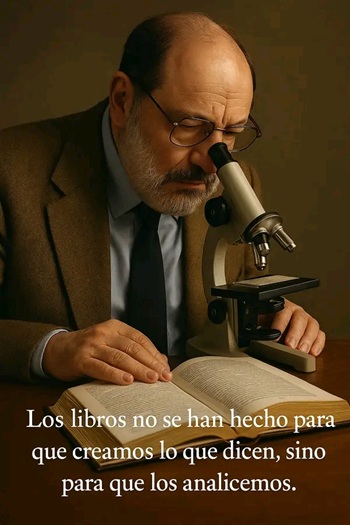 «𝐋𝐨𝐬 𝐥𝐢𝐛𝐫𝐨𝐬 𝐧𝐨 𝐬𝐞 𝐡𝐚𝐧 𝐡𝐞𝐜𝐡𝐨 𝐩𝐚𝐫𝐚 𝐪𝐮𝐞 𝐜𝐫𝐞𝐚𝐦𝐨𝐬 𝐥𝐨 𝐪𝐮𝐞 𝐝𝐢𝐜𝐞𝐧, 𝐬𝐢𝐧𝐨 𝐩𝐚𝐫𝐚 𝐪𝐮𝐞 𝐥𝐨𝐬 𝐚𝐧𝐚𝐥𝐢𝐜𝐞𝐦𝐨𝐬. 𝐂𝐮𝐚𝐧𝐝𝐨 𝐜𝐨𝐠𝐞𝐦𝐨𝐬 𝐮𝐧 𝐥𝐢𝐛𝐫𝐨, 𝐧𝐨 𝐝𝐞𝐛𝐞𝐦𝐨𝐬 𝐩𝐫𝐞𝐠𝐮𝐧𝐭𝐚𝐫𝐧𝐨𝐬 𝐪𝐮𝐞́ 𝐝𝐢𝐜𝐞, 𝐬𝐢𝐧𝐨 𝐪𝐮𝐞́ 𝐪𝐮𝐢𝐞𝐫𝐞 𝐝𝐞𝐜𝐢𝐫, 𝐜𝐨𝐦𝐨 𝐯𝐢𝐞𝐫𝐨𝐧 𝐦𝐮𝐲 𝐛𝐢𝐞𝐧 𝐥𝐨𝐬 𝐯𝐢𝐞𝐣𝐨𝐬 𝐜𝐨𝐦𝐞𝐧𝐭𝐚𝐝𝐨𝐫𝐞𝐬 𝐝𝐞 𝐥𝐚𝐬 𝐞𝐬𝐜𝐫𝐢𝐭𝐮𝐫𝐚𝐬.» En un mundo saturado de información, donde cada segundo se generan millones de palabras en libros, redes sociales, medios y plataformas digitales, estas frases de hoy, de Umberto Eco, nos llegan con una urgencia casi profética.