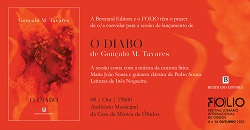 A Bertrand Editora tem o prazer de convidar para a sessão de lançamento e para a sessão de apresentação de Diabo, de Gonçalo M. Tavares, que decorrem em Óbidos e Lisboa, respetivamente, a 8 e 12 de outubro. A sessão de lançamento, integrada no FOLIO – Festival Literário Internacional de Óbidos, está agendada para sábado, 8 de outubro, às 19h00, no Auditório Municipal da Casa da Música e conta com música da cantora lírica Maria João Sousa, guitarra clássica de Pedro Sousa e leituras de Inês Nogueira. A 12 de outubro, o encontro decorre na FNAC Chiado, em Lisboa, às 18h30, com música da cantora lírica Maria Varandas guitarra clássica de Pedro Sousa e leituras de Inês Nogueira.