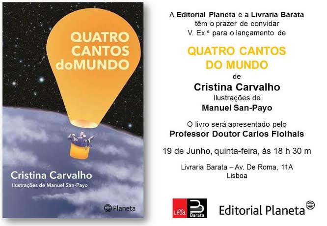 QC_eventoQuatro Cantos do Mundo é uma viagem ao planeta Terra, ao seu lado mais profundo, desconhecido e misterioso. Um devaneio literário como lhe chama a autora, uma viagem por locais físicos, percorridos pelo olhar irrequieto da nossa imaginação. Recantos apenas acessíveis a um devir poético. São quatro contos entregues a um narrador que nos chega do infinito universo, ele próprio viajante das estrelas e que nos fala a partir do ponto de vista das crianças ou dos jovens. Só a curiosidade de um coração puro vence o medo do desconhecido e só uma mente livre do peso do bem e do mal consegue escutar a voz pela qual a natureza nos fala. Então, todas as viagens se tornam possíveis.
