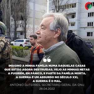 Na sua primeira visita à Ucrânia desde o início da invasão russa em 24 de fevereiro, António Guterres tem encontro marcado para esta tarde com o Presidente ucraniano, Volodymyr Zelensky, tendo visitado também durante a manhã as localidades de Bucha e Irpin.