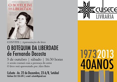 Fernando Dacosta não se cansa de vasculhar o tempo de Salazar e a convivência do ditador com o poder. Escreveu vários livros sobre o assunto. Na próxima sexta-feira teremos a oportunidade de falar com o escritor sobre os seus livros e muito mais. O mote é o Estado Novo, e a conversa vai ser de arromba. É que o convidado tem mesmo muito para dizer. Convidados. Apareçam.